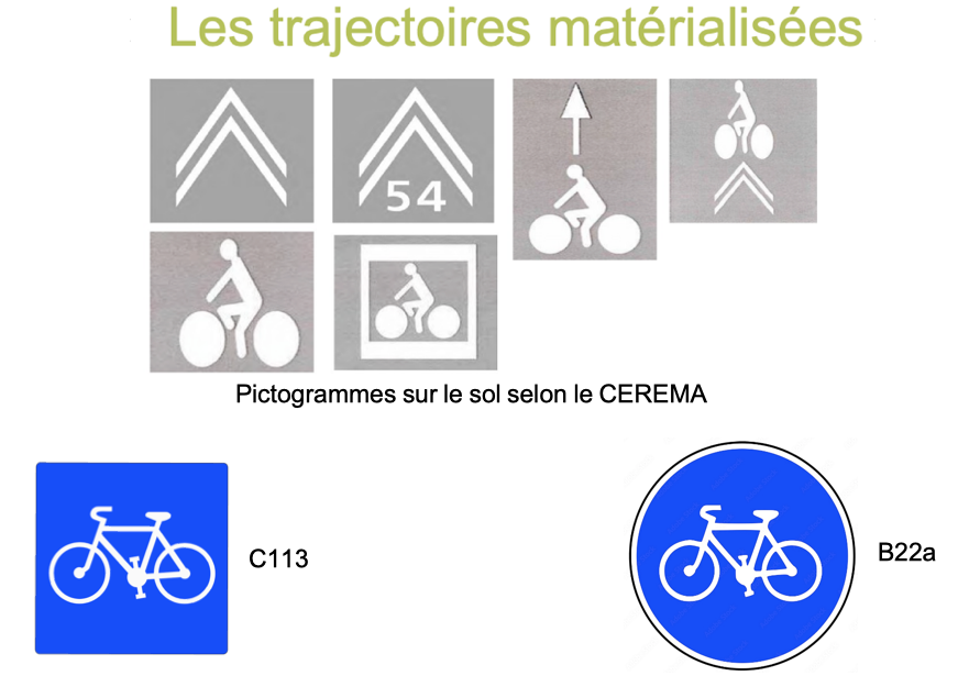Sans la présence des panneaux C113 ou B22a, les « voies cyclables », repérées seulement par des pictogrammes sur le sol, ont-elles le statut de « pistes cyclables » au sens du CR?